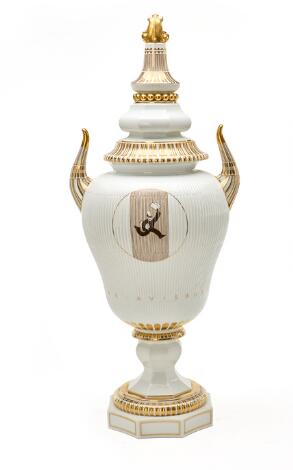 2548/272LyngbyHans Tegner: Porcelain vase, decorated in gold and brown. Bing & Grondahl. H. 74 cm.