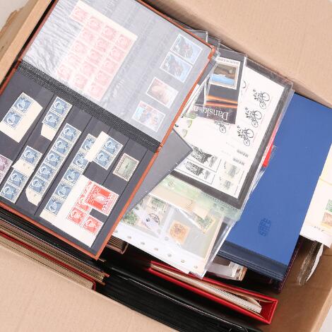 2548/4853GlostrupEuropa. Stor rodekasse med diverse mærker i indstiksbøger, plancher og æsker mv.