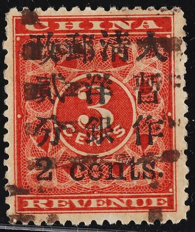 2548/4879GlostrupKina. 1897. 2c. på 3c. Den "gode" type i pæn kvalitet, stemplet. Let fold.