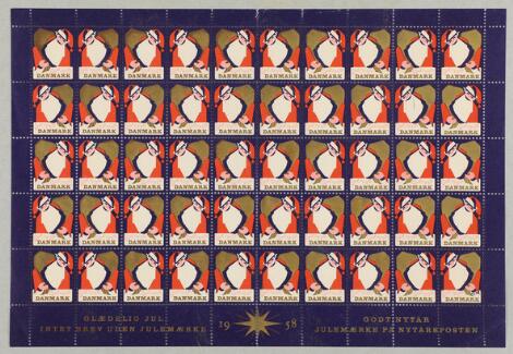 2548/4299GlostrupDanmark. Juleark. 17 ark 1951, 15 ark 1952 og 49 ark 1982/78. Alle ark i helt perfekt ufoldet kvalitet. AFA 49.230
