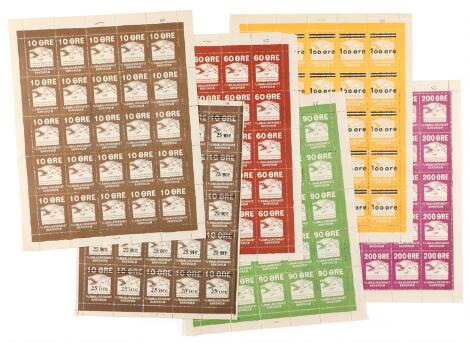 2548/4312GlostrupD/S Smaalandshavet Bandholm. 6 sjældne helark fra 10 øre til 200 øre. Lidt folder og splittelse.