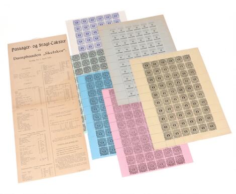 2548/4322GlostrupSkælskør Dampskibsselskab. 6 helark fra valøre 5 øre til 5 kr. samt plakat med Passager og Fragt Takster. Flot kvalitet.