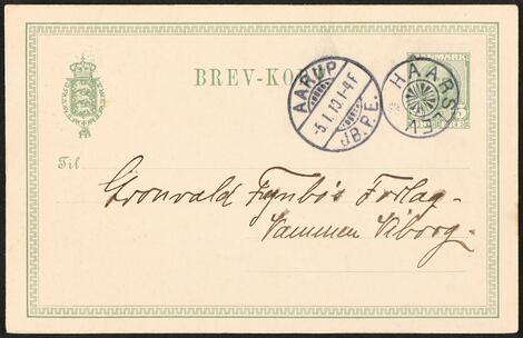 2548/4356GlostrupHAARSLEV. Lidt bedre stjernestempel i meget flot kvalitet på helsag, 5 øre.