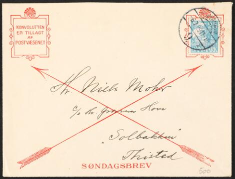 2548/4339GlostrupSøndagsbrev. Særdeles flot og sjældnere fortrykt søndagskonvolutfrankeret med 25 øre og sendt til Niels Mohr den 6.7-1929 som er et tildligt søndagsbrev!