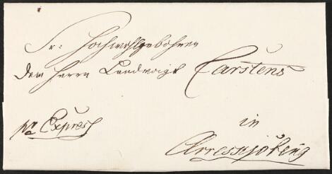 2548/4324Glostrup1807. Napoleonskrigen. Tjenestebrev dateret Soeby d. 26.11.1807 sendt til Ærøskjøbing. Påskrevet "Pr. Express". Fuldt indhold. Sjælden.