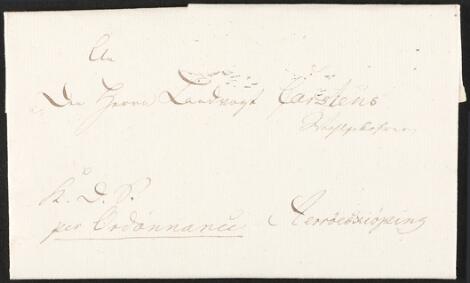 2548/4325Glostrup1807. Napoleonskrigen. Tjenestebrev påskrevet k.d.S. pr. Ordonnance med rapport dateret Cantonnement zu Gravendahl d. 16.11.1807 til Ærøskøbing. (DAKA 14.000 kr