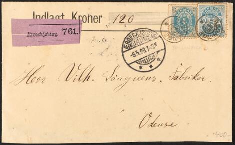 2548/4348GlostrupBREGNINGE. Stjernestempel på pengebrev fra ÆRØSKJØBING 6.5.98 frankeret med 4 øre og 20 øres mærke.