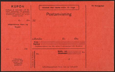 2548/4337GlostrupPostanvisning. Formular uden posthorn og formular nr. Det drejer sig nok om et lokalt færørsk tryk fra 1940-1946, under besættelen.