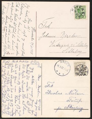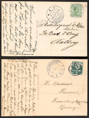 2548/4354GlostrupGJERNUM og VESTERØHAVN. 2 flotte stjernestempler på postkort frankeret med 5 øre.