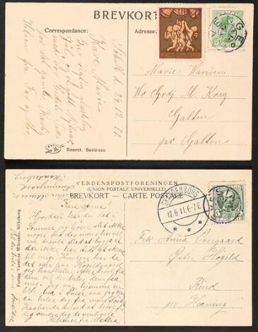 2548/4304GlostrupJulemærker. 1904-1950. Komplet samling på postkort med flere sendt juleaften 24. december.