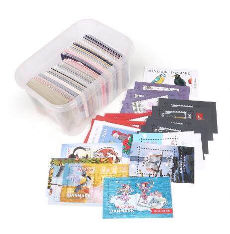 2548/4308GlostrupJulemærker. Parti i flyttekasse med mængder af juleark og julemærker fra Danmark og områder.