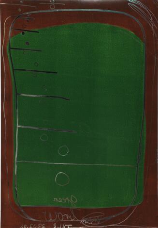 2548/562LyngbyTal R: Composition from the portfolio “Minus”, 2006. Signed Tal R., 17/18. Two-coloured linocut on silver foil. Sheet size 99.5 × 70 cm. Unframed.