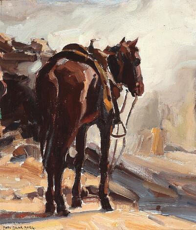 2548/508LyngbyCarl Oscar Borg: "Indianhäst, Arizona". Signed Carl Oscar Borg. Oil on canvas laid on board. 26 x 23 cm.