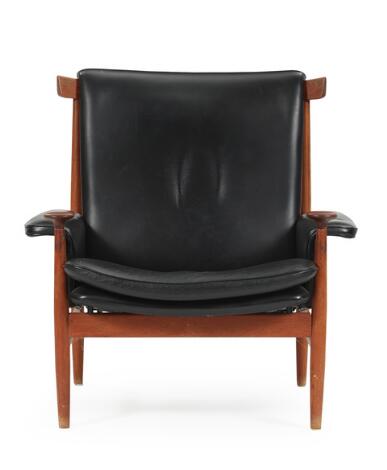 2548/563AarhusFinn Juhl: "Bwana". A teak easy chair, seat and back upholstered with black leather. Manufactured by France & Son. 1960s.