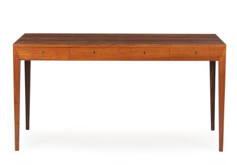 2548/533AarhusSeverin Hansen Jr.: A rosewood desk, front with four drawers. Manufactured by Haslev Møbelsnedkeri. H. 73. L. 143. W. 75 cm.