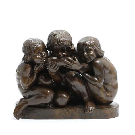 2548/509AarhusRudolph Tegner: “De tørstige børn”, 1916. Signed. R. Tegner. Patinated bronze. H. 25 cm. W. 30 cm. D. 20 cm.