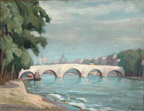 2548/774LyngbyLili Elbe (b. Einar Wegener): Pont Royal, Paris, 1913. Signed E.W. Oil on panel. 28 x 36 cm.