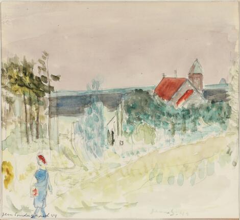 2548/779LyngbyJens Søndergaard: Landscape. Signed Jens Søndergaard 44. Watercolour on paper. Visible size 22 x 24 cm.