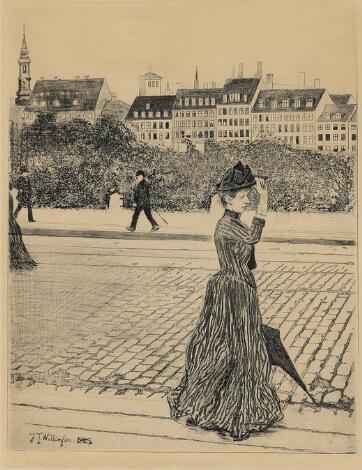 2548/781LyngbyJ. F. Willumsen: ”Dame, der spadserer”. Signed in the print J. F. Willumsen 1889. Engraving and etching. Visible size 43 x 34 cm.