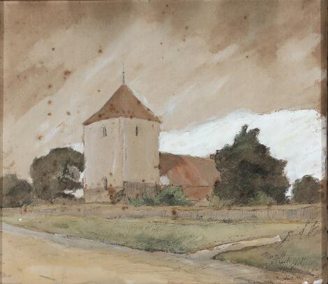 2548/810LyngbyOluf Høst: Kirke (Church), 1913. Signed monogram OH. Watercolour on paper. Visible size 22.5 x 26 cm.