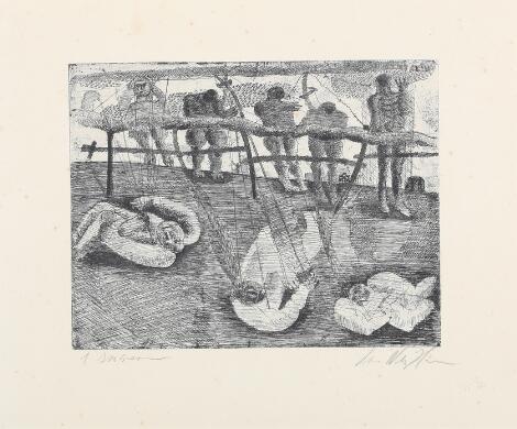 2548/753AarhusSvend Wiig Hansen: "I snorene". Signed Svend Wiig Hansen. Etching. Visible size 38 x 47 cm.