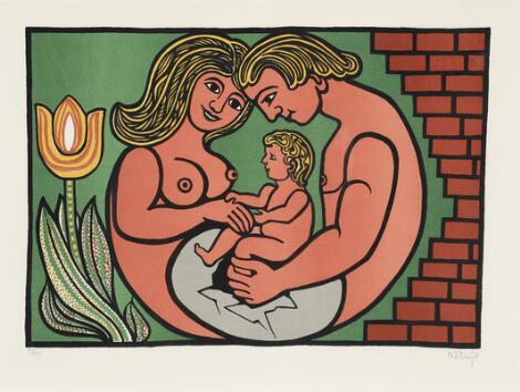2548/771LyngbyHenry Heerup: "The Family", 1979. Signed Heerup, 80/260. Lithograph in colours. Visible size 49 x 59 cm.