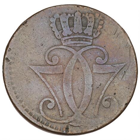 Frederik V, 4 Grote 1761, Oldenborg, H 6, Sieg 52.2, S 33, J 5, K/T 357b/b, varmeskadet - sjælden