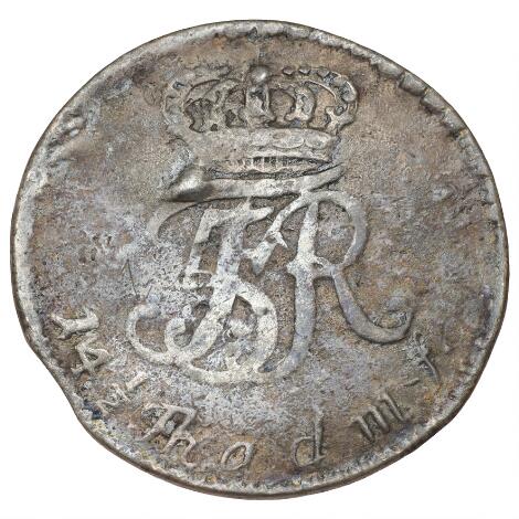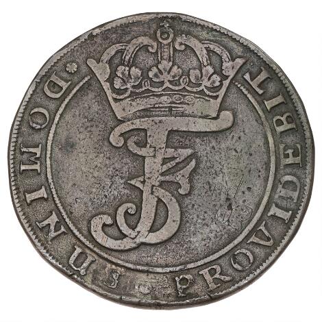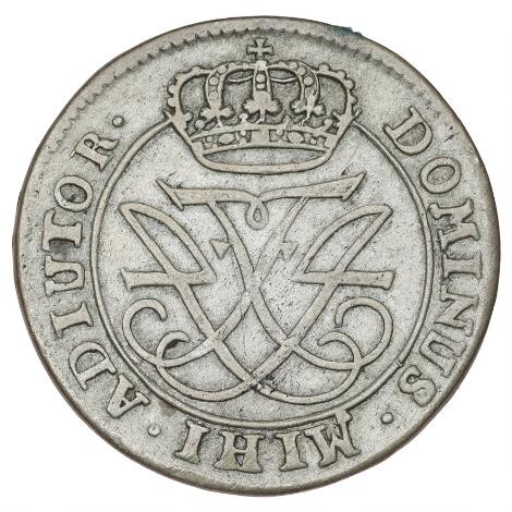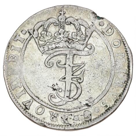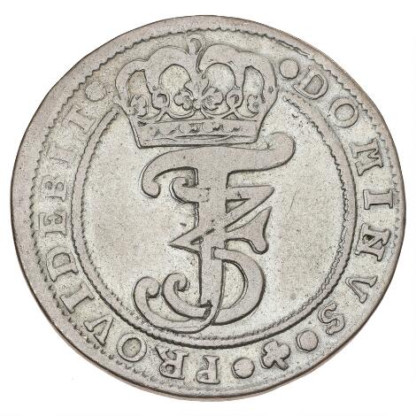 Frederik IV, Glückstadt, 8 skilling 1704, H 58, S 25, Sieg 55.2 - pænt eksemplar af den sjældne fejlmønt med “FRID VI”.