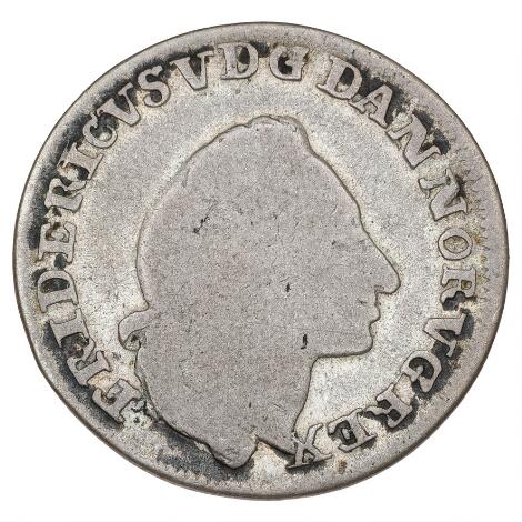 Frederik V, Oldenborg, 1/6 thaler 1764, H 4D. Sieg 55.7, ualmindelig type