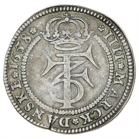 Frederik III, 4 mark / krone 1658, H 95A, Aagaard 68.1 - ekstrem sjælden variant