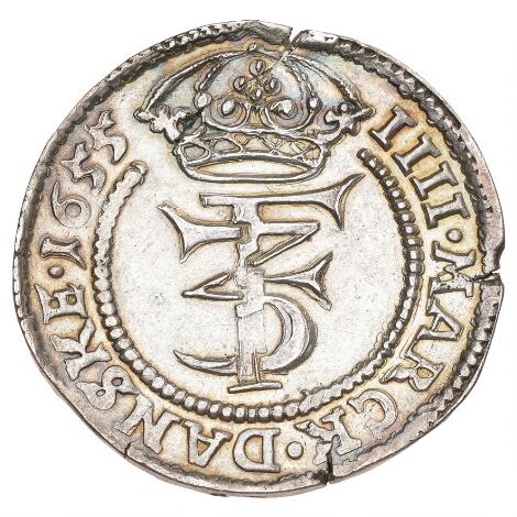 Frederik III, 2 skilling 1655, H 130B, Sieg 17.2, Aagaard 40 - særdeles sjældent årstal