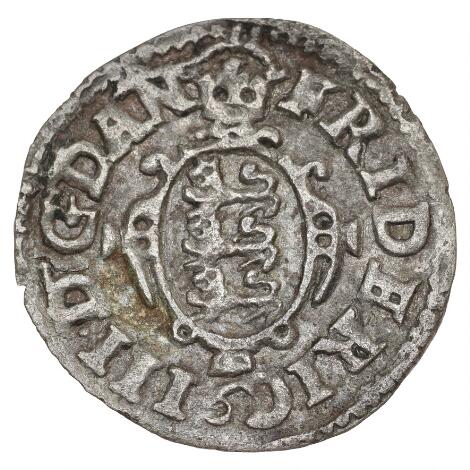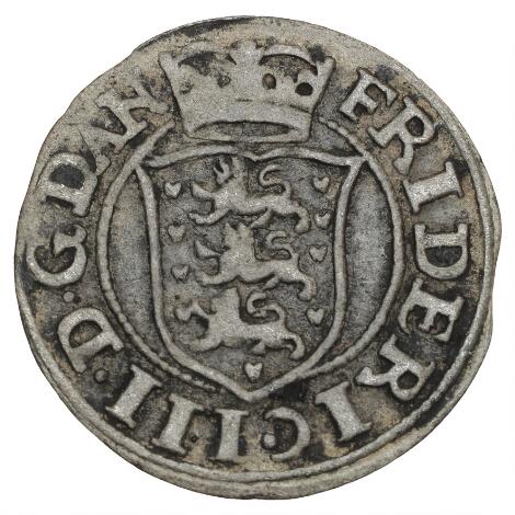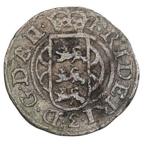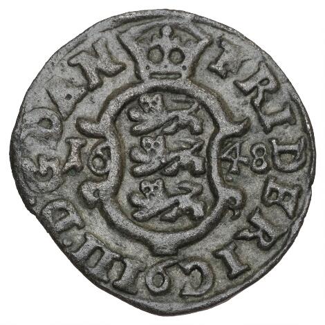 Frederik III, skilling 1648, H 125 - usædvanlig pænt eksemplar af dette sjældne årstal