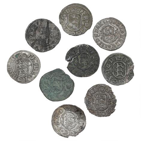 Frederik III, samling af 1 skillinge, i alt 9 stk.