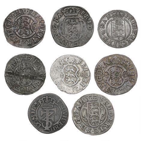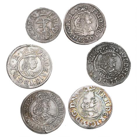 Frederik III, Glückstadt, lille samling af mønter i pæn kvalitet, i alt 6 stk.