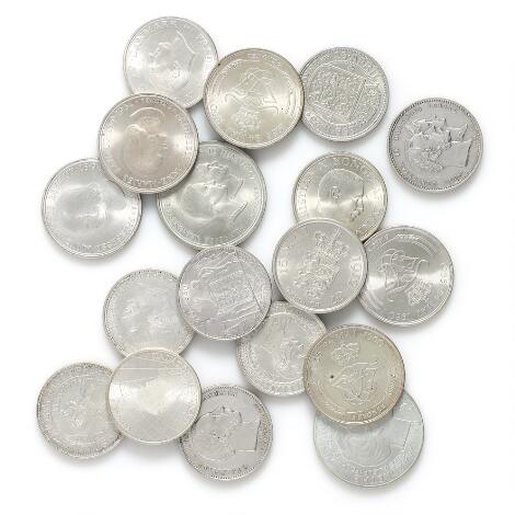 Erindringsmønter, 1888-1958, 1960 (3 stk.), 1964 (2), 1967 og 1972, i alt 18 stk.