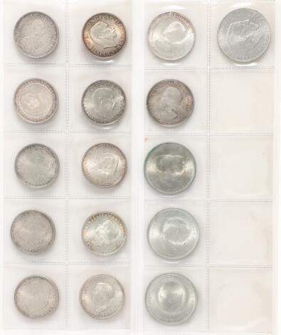 Erindringsmønter, 1906-1968, 10 stk., samt øvrige sølvmønter, i alt 15 stk.