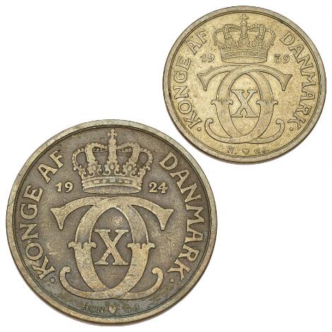 1/2 kr 1939 N, H 22B; 1 kr 1924 HCN, H 21A. (2)