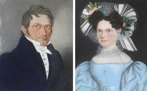 Ubekendt maler, 19. årh.: Par biedermeier portrætter. Usigneret. Pastel på papir. Lysmål 38 x 29,5.
