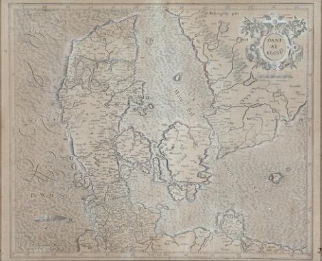 Gerard Mercator: “Daniae regnu”. Håndkoloreret kobberstik. Lysmål 38 x 47 cm.