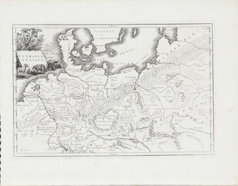 Christophori Cellarius: "Germania Antiqua". 1774. Kobberstik. 44 x 55 cm. Uindrammet.
