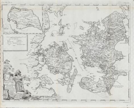 Jacob Langebek: "Selandiæ. Fioniæ. Ducatuumve". Ca. 1770. Kobberstik. 40,5 x 49,5 cm. Uindrammet.