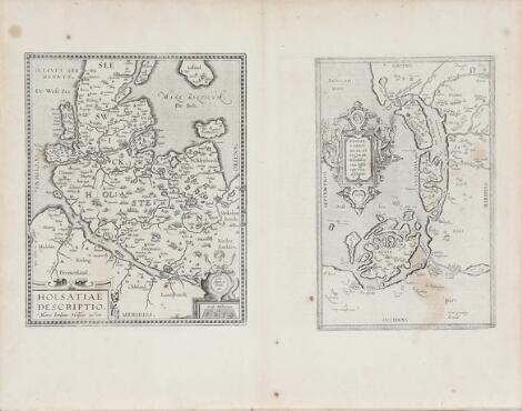 Abraham Ortelius: "Holsatiae Descripto". 1612. Håndkoloreret kobberstik. 46 x 58 cm. Uindrammet.