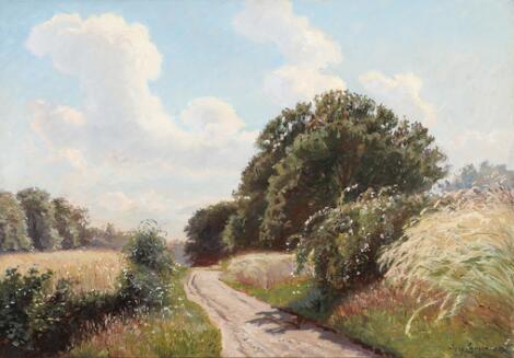 Viggo Langer: Solskinsdag i Hellebæk. Sign. Viggo Langer 1923. Olie på lærred. 64 x 90 cm.