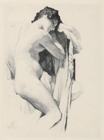 Frans Schwartz: Fire motiver med kvinder. Tryksign. monogram. Radering. Lysmål 15 x 12-23 x 17. (4)