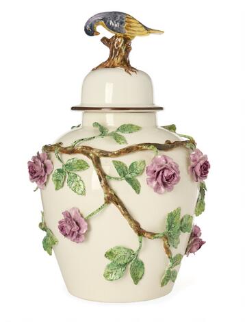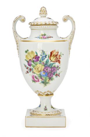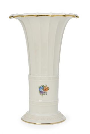 Fürstenberg lågvase af porcelæn, dekoreret i farver og guld med blomster. 20. årh. H. 31 cm
