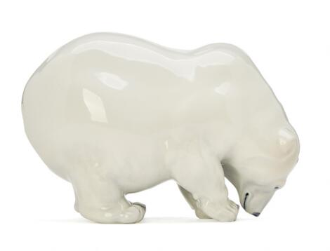 Jeanne Grut: Isbjørn. Figur af porcelæn. 4753. Royal Copenhagen. H. 20 cm. L. 32 cm.