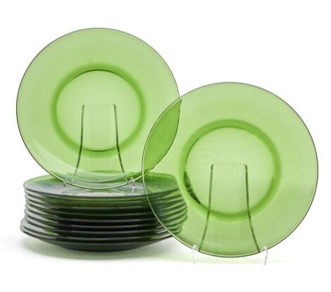 Sæt på 11 tallerkener af grønt glas. 20. årh. Diam. 23 cm. (11)