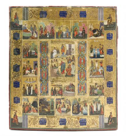 Russisk højtidsikon. Tempera på træpanel. 19. årh. 40 x 35 cm.