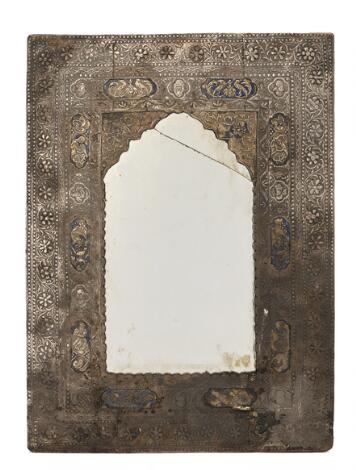 Iransk spejl beklædt med sølvfolie og emalje. Ca. 1900. 43 x 32 cm.