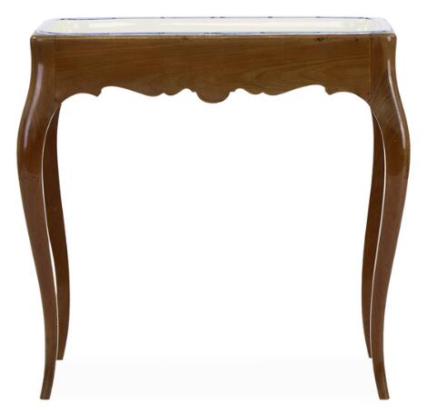 Svensk bakkebord med plade af fajance, signeret Rörstrand 1912. Bakke 70 x 48 cm. Bord H. 72 cm L. 71 cm B. 49 cm.
